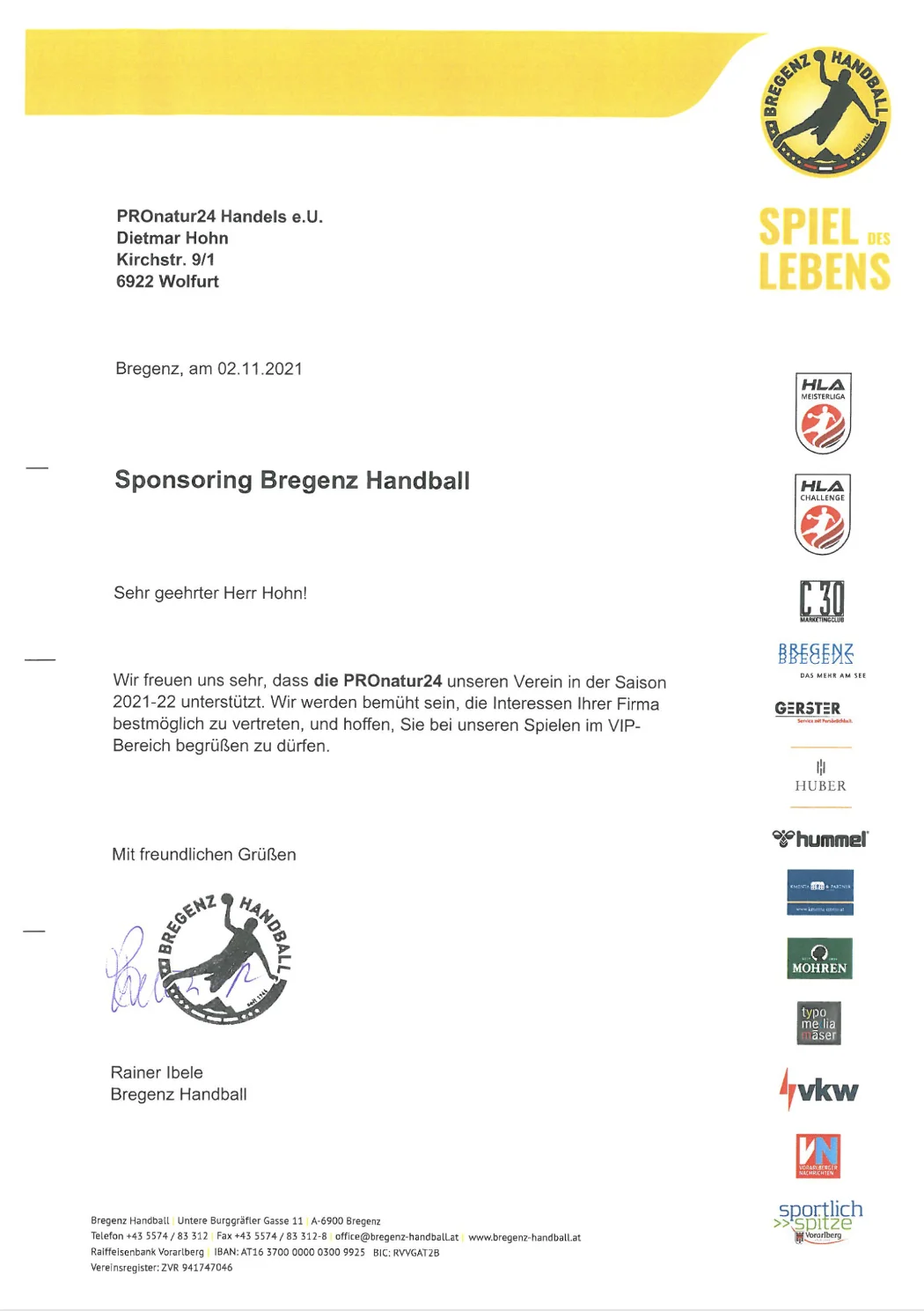 SPONSORING VON BREGENZ HANDBALL 2021/2022