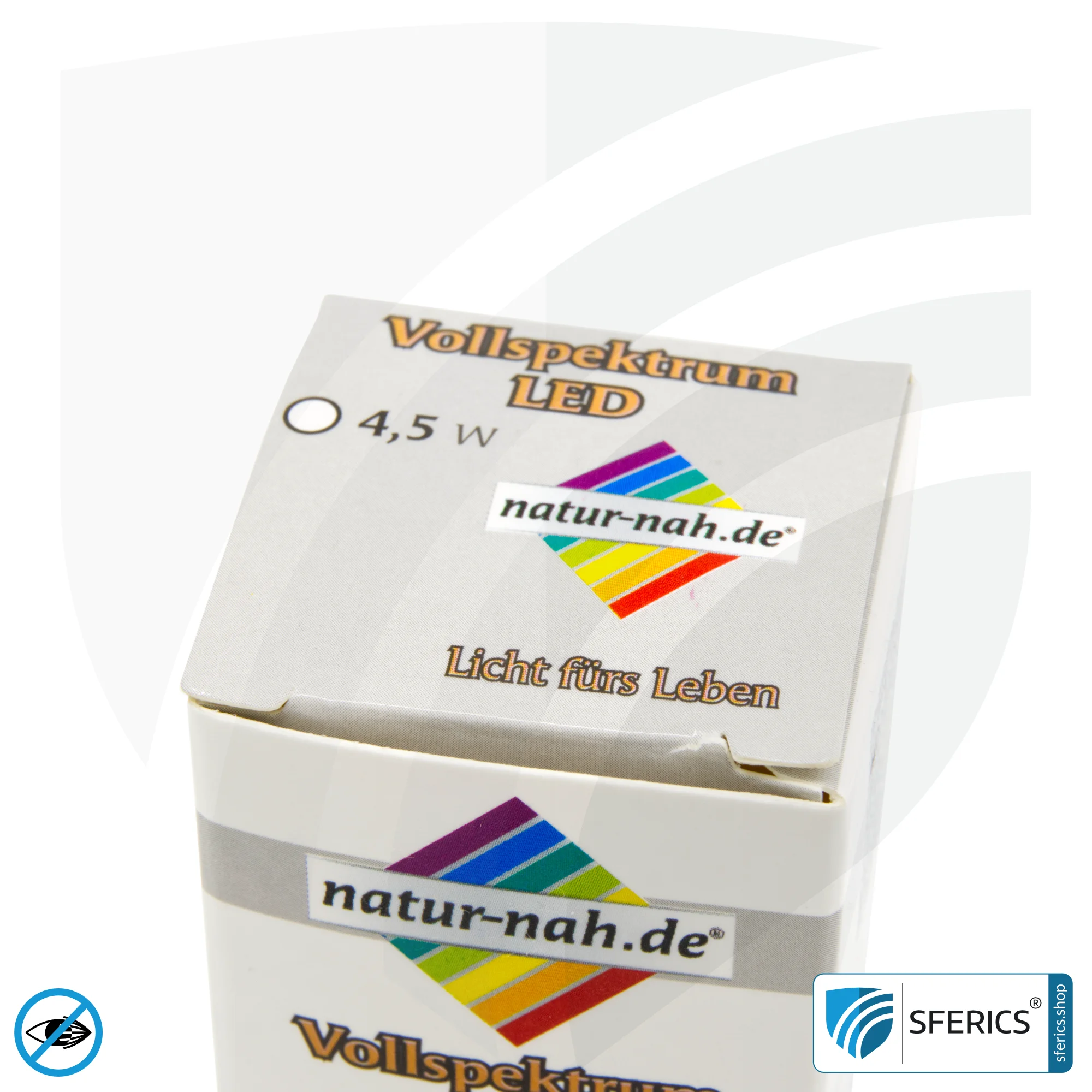 Die Helligkeit dieser vollspektralen LED-Lampe zählt zur Leistungsklasse 45 Watt Glühlampe.