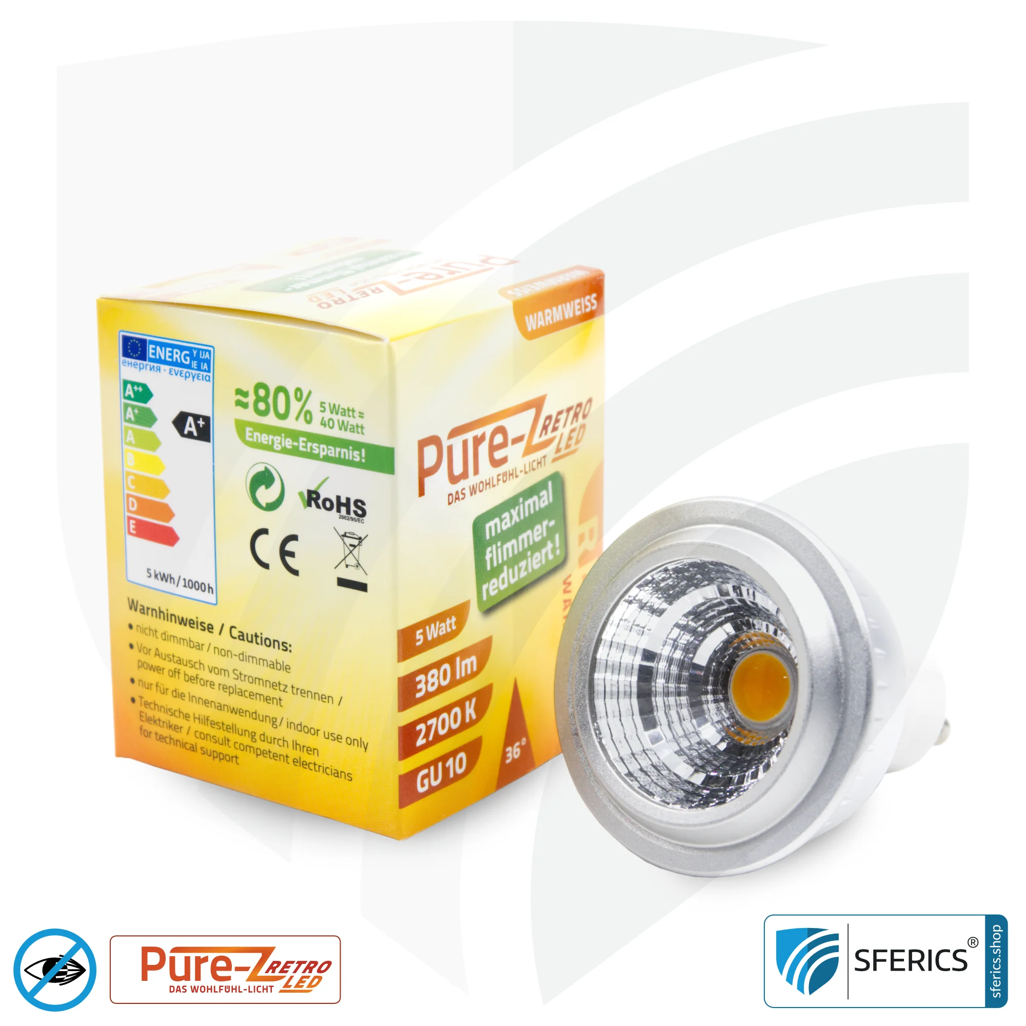 5 Watt LED Spot Pure-Z-Retro | Hell wie 40 Watt, 380 Lumen | CRI über 90 | flimmerfrei | warmweiß | GU10