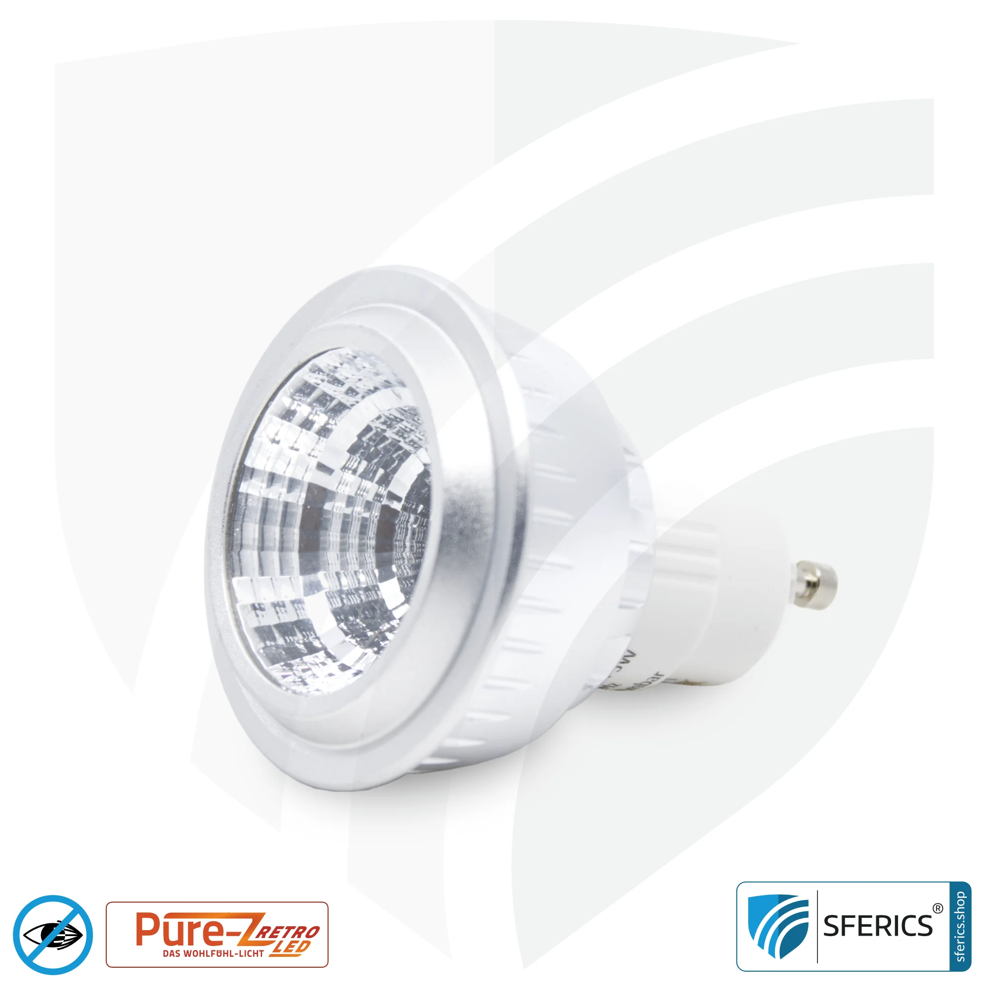 5 Watt Wohlfühl LED SPOT Pure-Z-Retro mit GU10 Sockel. Ein naturnahes BIO LICHT mit einer hohen Farbwiedergabe und nahezu “flimmerfrei”. Nicht dimmbar.