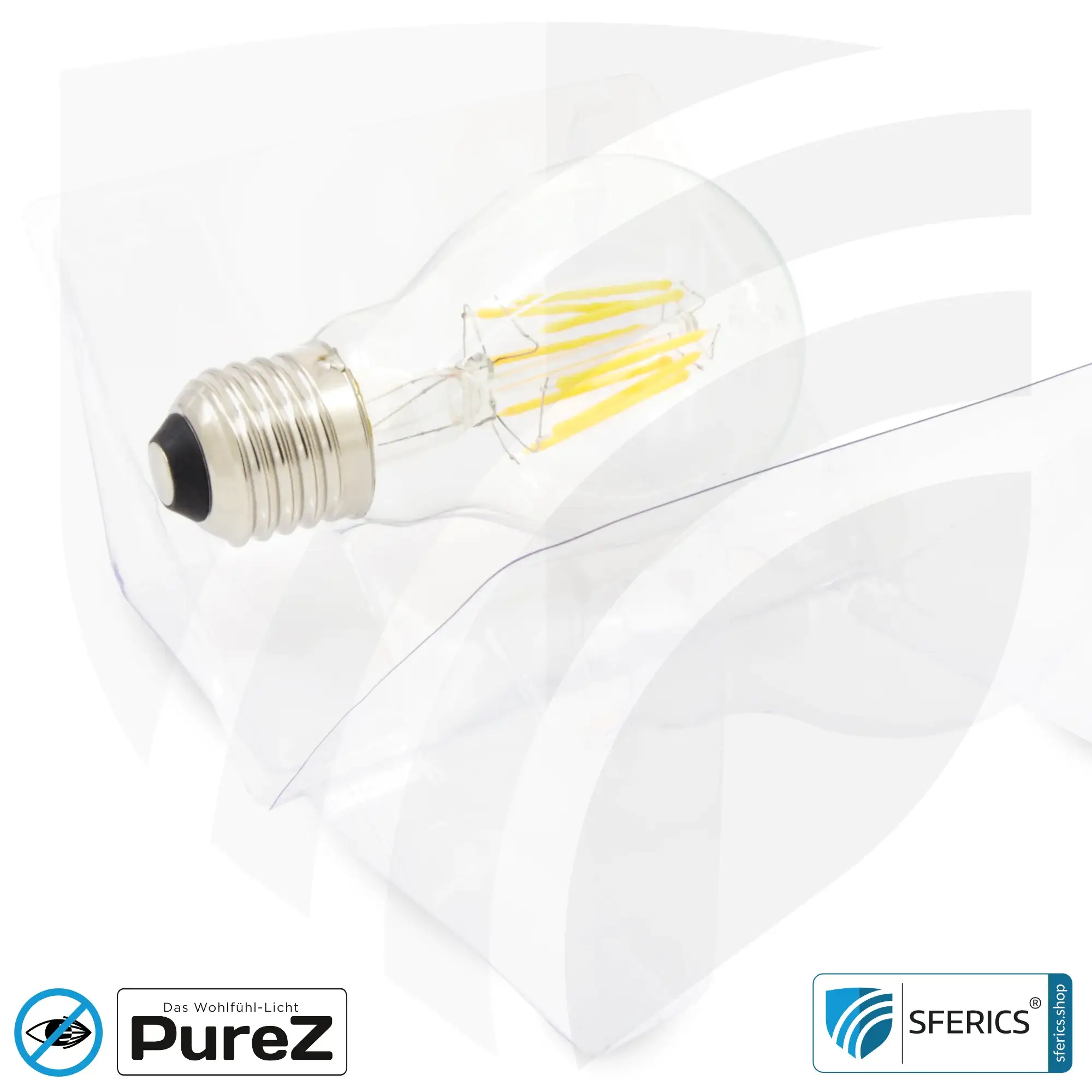 6,4 Watt LED Filament Pure-Z NEO mit E27 Sockel. Ein naturnahes Wohlfühl BIO LICHT mit einer unglaublichen Farbwiedergabe CRI 97 und nahezu “flimmerfrei”. Verfügbar in Klarglas und Mattglas. Nicht dimmbar.