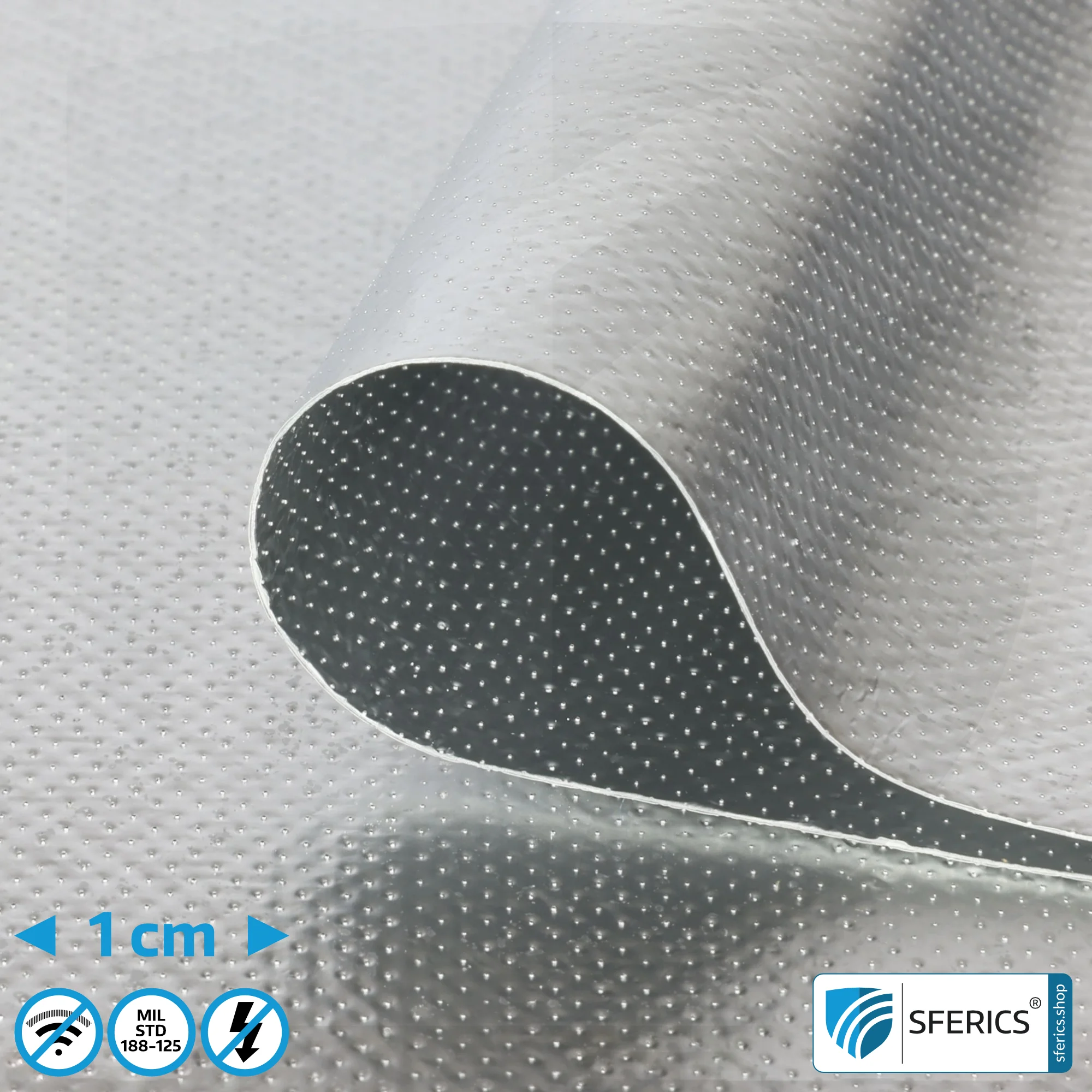 Mit dem neuen A300 HEMP Abschirmvlies erfüllen wir die Militärnorm MIL-STD-188-125 zum Schutz kritischer Einrichtungen der Infrastruktur. Schutz vor sehr starken elektromagnetischen Impulse (HEMP) und maximal abschirmend gegen EMF mit bis zu 123 dB. Breite 90 cm.