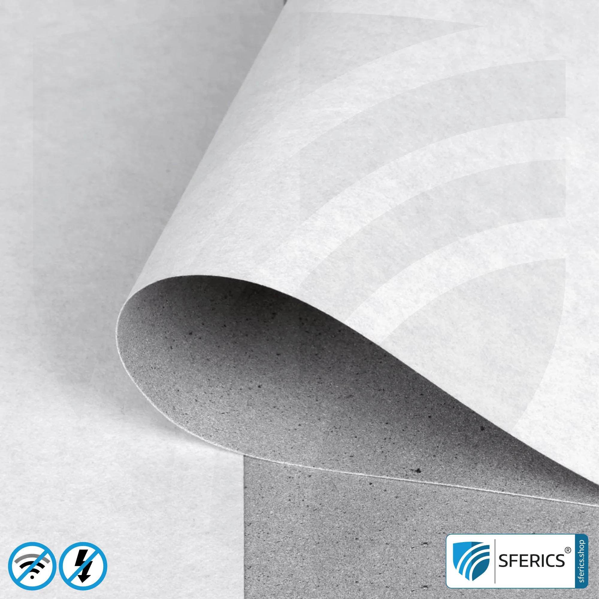Wird das Abschirmmaterial in Schritten von 1,0 Laufmetern auf Kundenwunsch individualisiert und von der Rolle geschnitten, ist eine Rücknahme oder ein Widerruf der Bestellung nicht möglich. Sie haben daher die Möglichkeit, ein kostenloses Materialmuster anzufordern – bitte VOR DER BESTELLUNG zugeschnittener Ware anfordern!