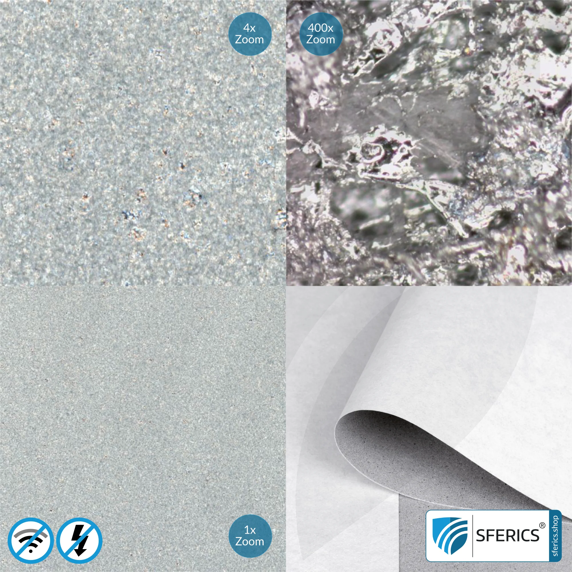 Wird das Abschirmmaterial in Schritten von 1,0 Laufmetern auf Kundenwunsch individualisiert und von der Rolle geschnitten, ist eine Rücknahme oder ein Widerruf der Bestellung nicht möglich. Sie haben daher die Möglichkeit, ein kostenloses Materialmuster anzufordern – bitte VOR DER BESTELLUNG zugeschnittener Ware anfordern!