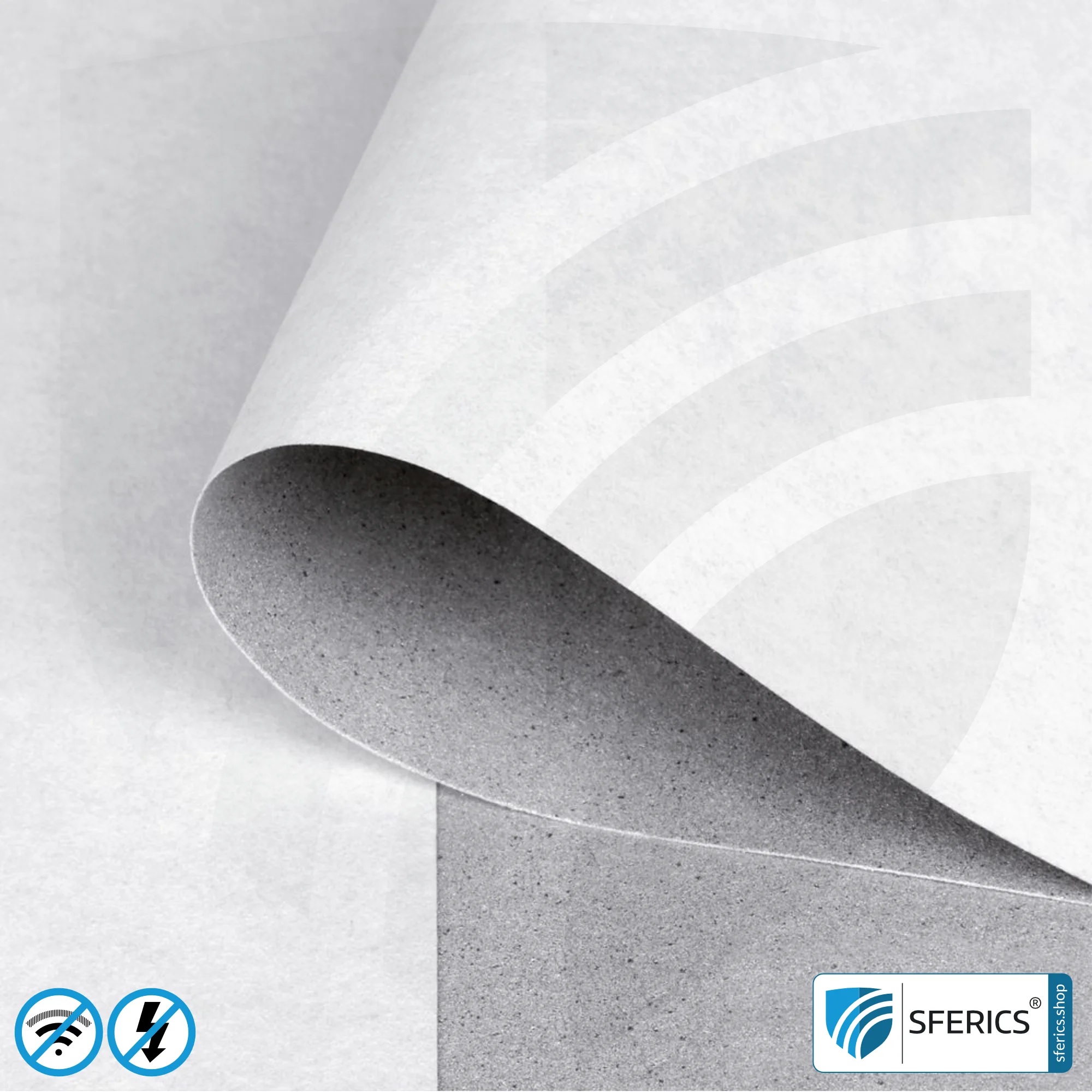 Wird das Abschirmmaterial in Schritten von 1,0 Laufmetern auf Kundenwunsch individualisiert und von der Rolle geschnitten, ist eine Rücknahme oder ein Widerruf der Bestellung nicht möglich. Sie haben daher die Möglichkeit, ein kostenloses Materialmuster anzufordern – bitte VOR DER BESTELLUNG zugeschnittener Ware anfordern!