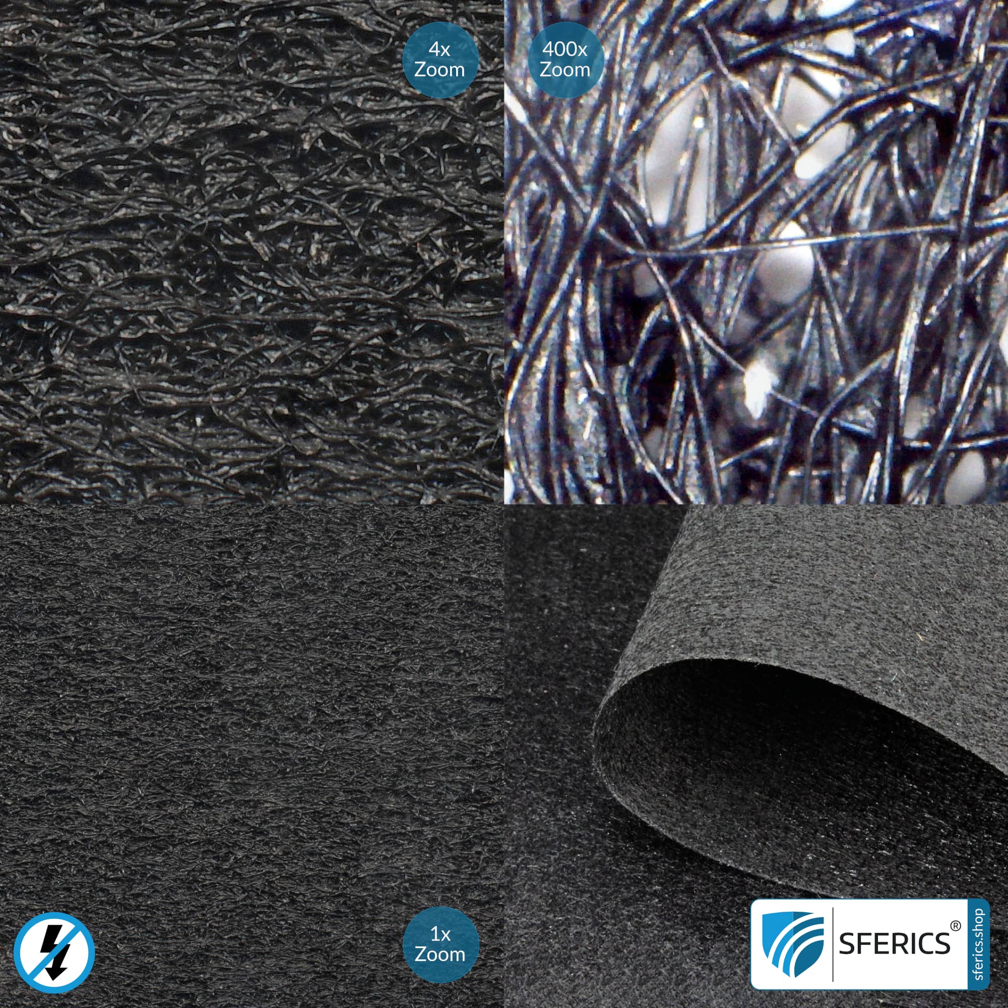 Wird das Abschirmmaterial in Schritten von 1,0 Laufmetern auf Kundenwunsch individualisiert und von der Rolle geschnitten, ist eine Rücknahme oder ein Widerruf der Bestellung nicht möglich. Sie haben daher die Möglichkeit, ein kostenloses Materialmuster anzufordern – bitte VOR DER BESTELLUNG zugeschnittener Ware anfordern!