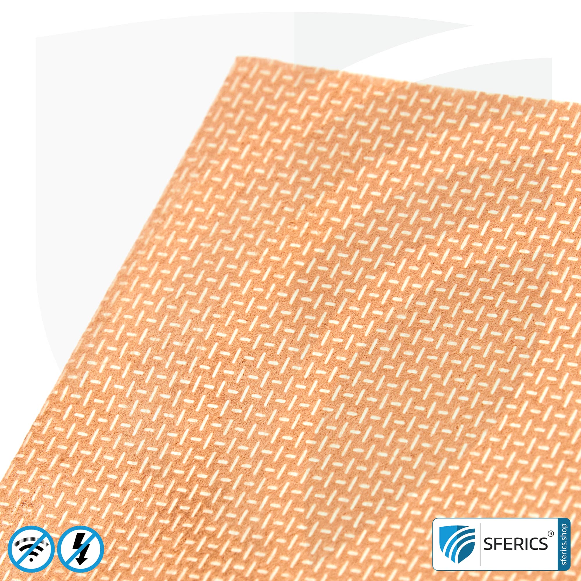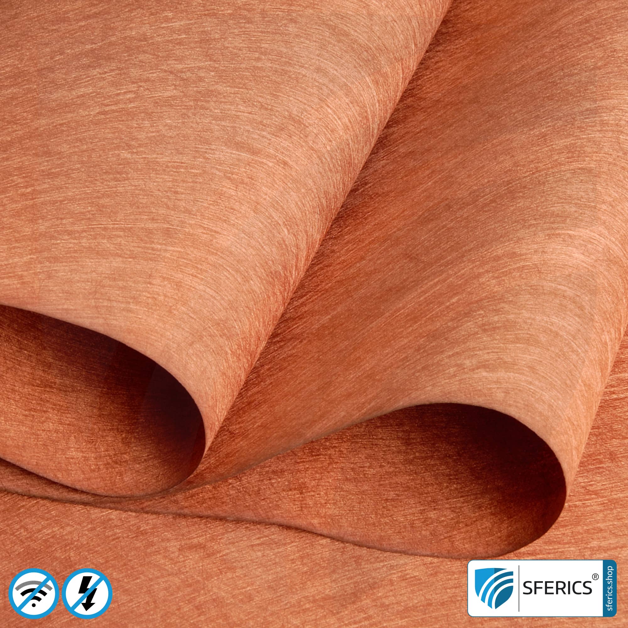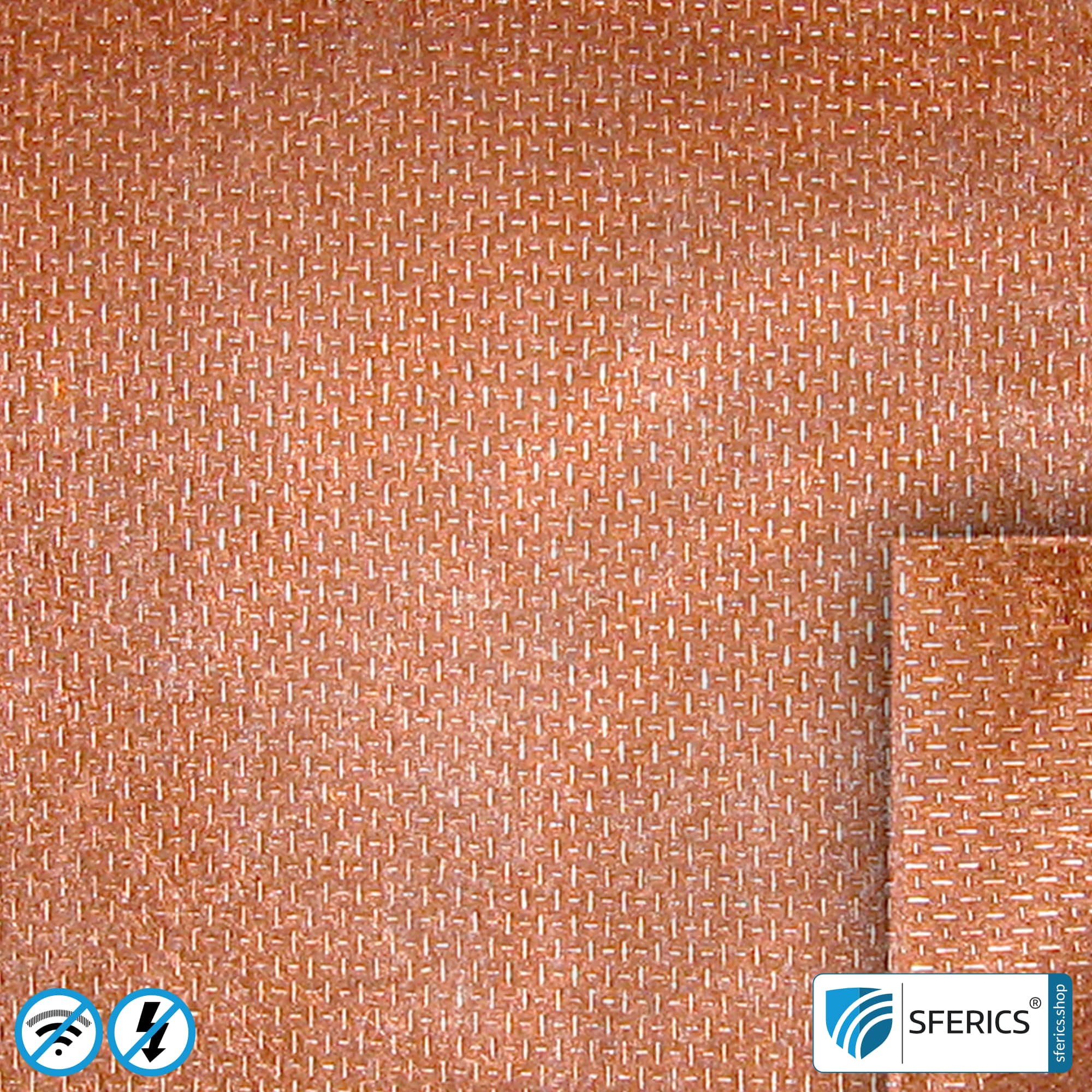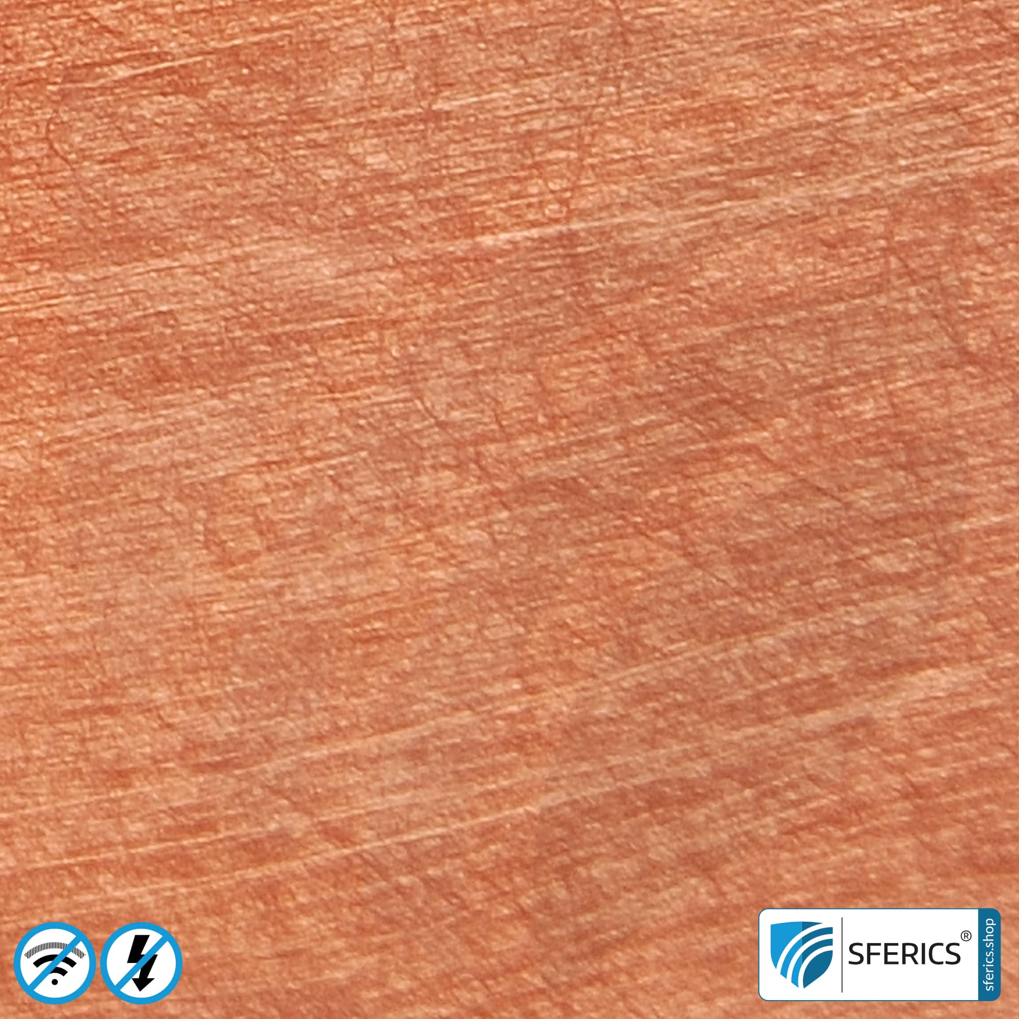 Abschirmvlies SAPHIR. Mit diesem abschirmenden kupferbeschichteten Faservlies gegen Elektrosmog HF + NF wird der effektive Strahlenschutz gegen Elektrosmog möglich. Wirkungsgrad Abschirmung 99,999 % (> 50 dB). Breite 100 cm. Wirkungsvoll gegen 5G!