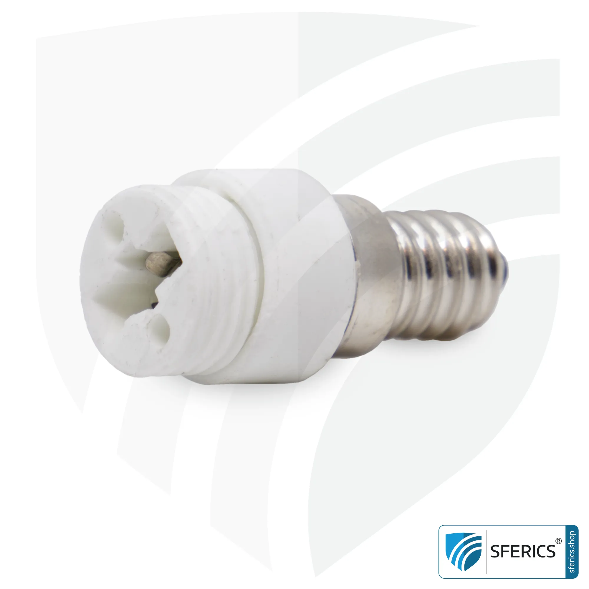 Universal Adapter um G9 Leuchtmittel in E14 Fassungen zu betreiben. Kompatibel mit G9 Hochvolt Halogen Leuchtmittel.
