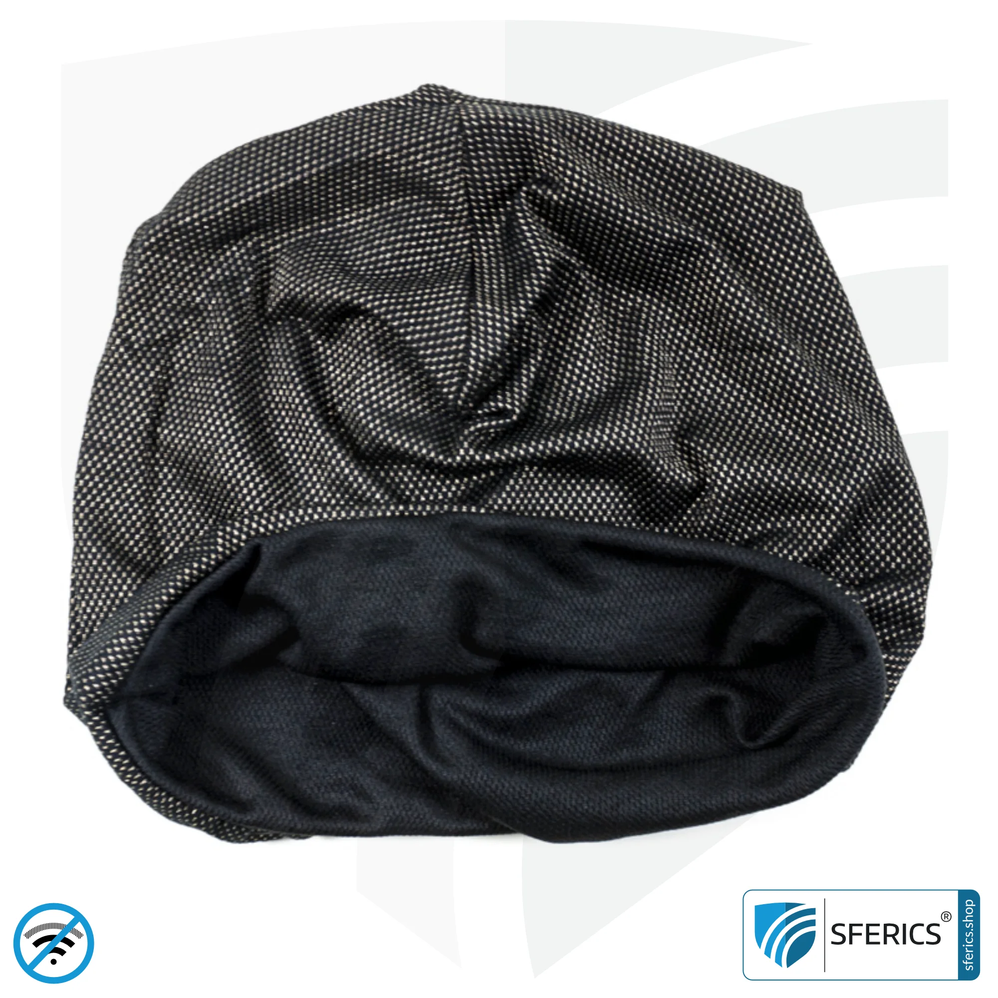 ANTIWAVE abschirmende Mütze Beany. Effektiv gegen Elektrosmog HF durch Funkstrahlung (Handystrahlung, WLAN, LTE, …) mit einem Wirkungsgrad über 99,9 % (bis zu 33 dB). Wirkungsvoll gegen 5G!