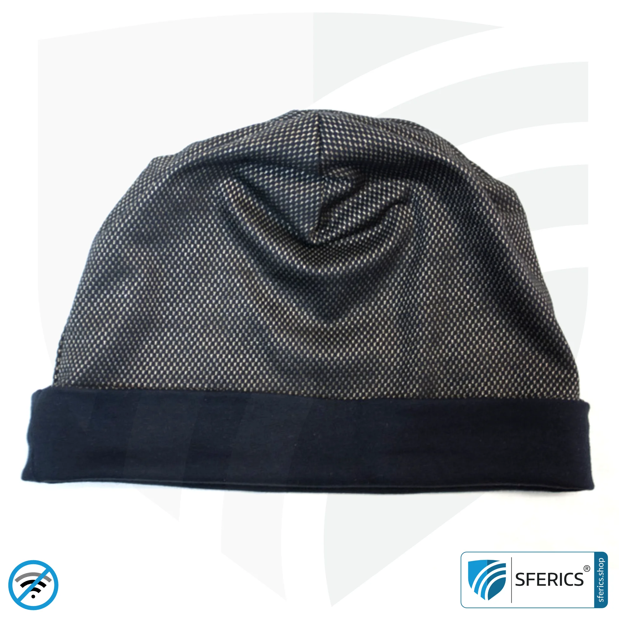 ANTIWAVE abschirmende Mütze Beany. Effektiv gegen Elektrosmog HF durch Funkstrahlung (Handystrahlung, WLAN, LTE, …) mit einem Wirkungsgrad über 99,9 % (bis zu 33 dB). Wirkungsvoll gegen 5G!