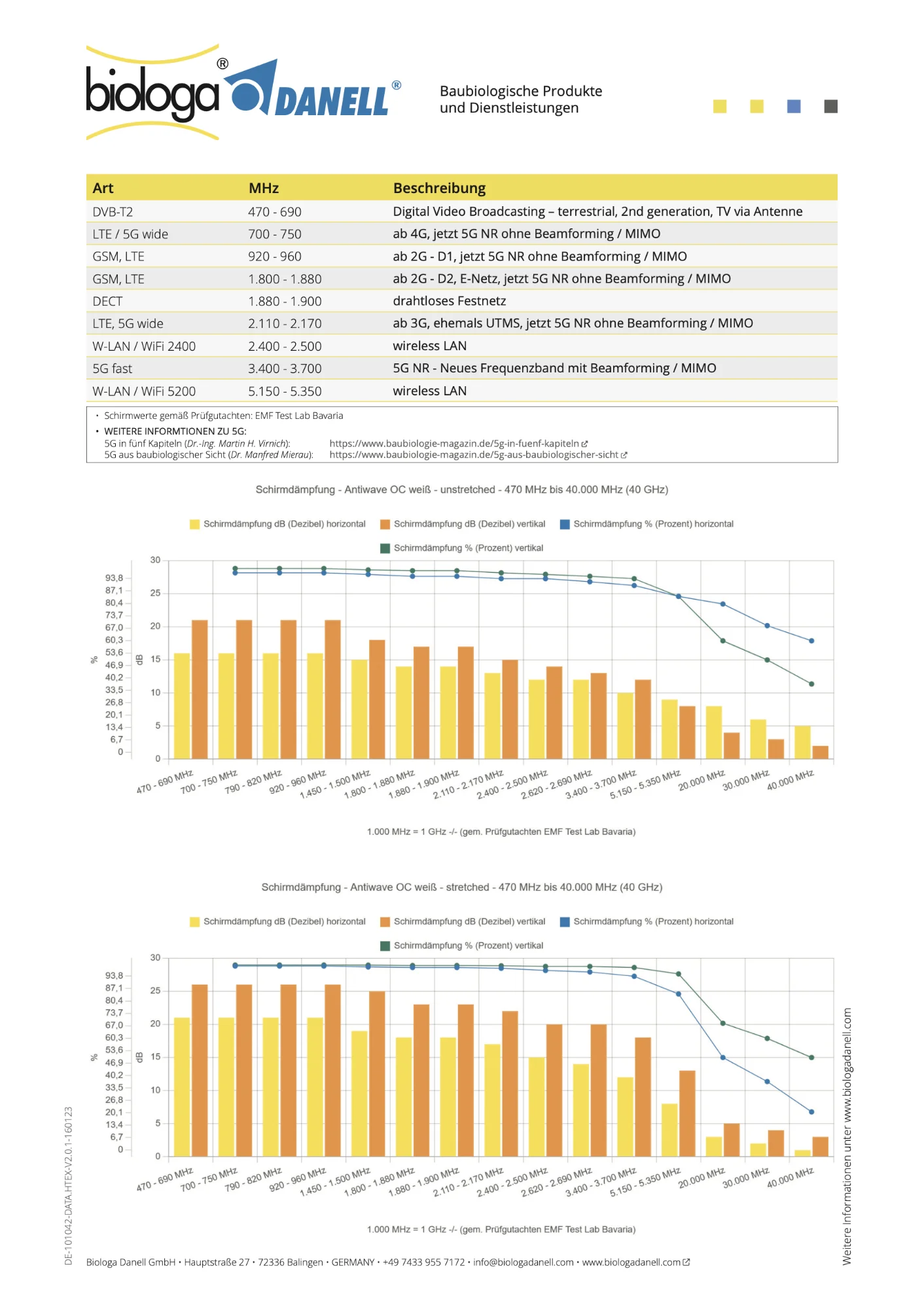 Größe Tuch / Datenblatt Schirmdämpfung Antiwave, weiss Schirmdämpfung Antiwave, schwarz