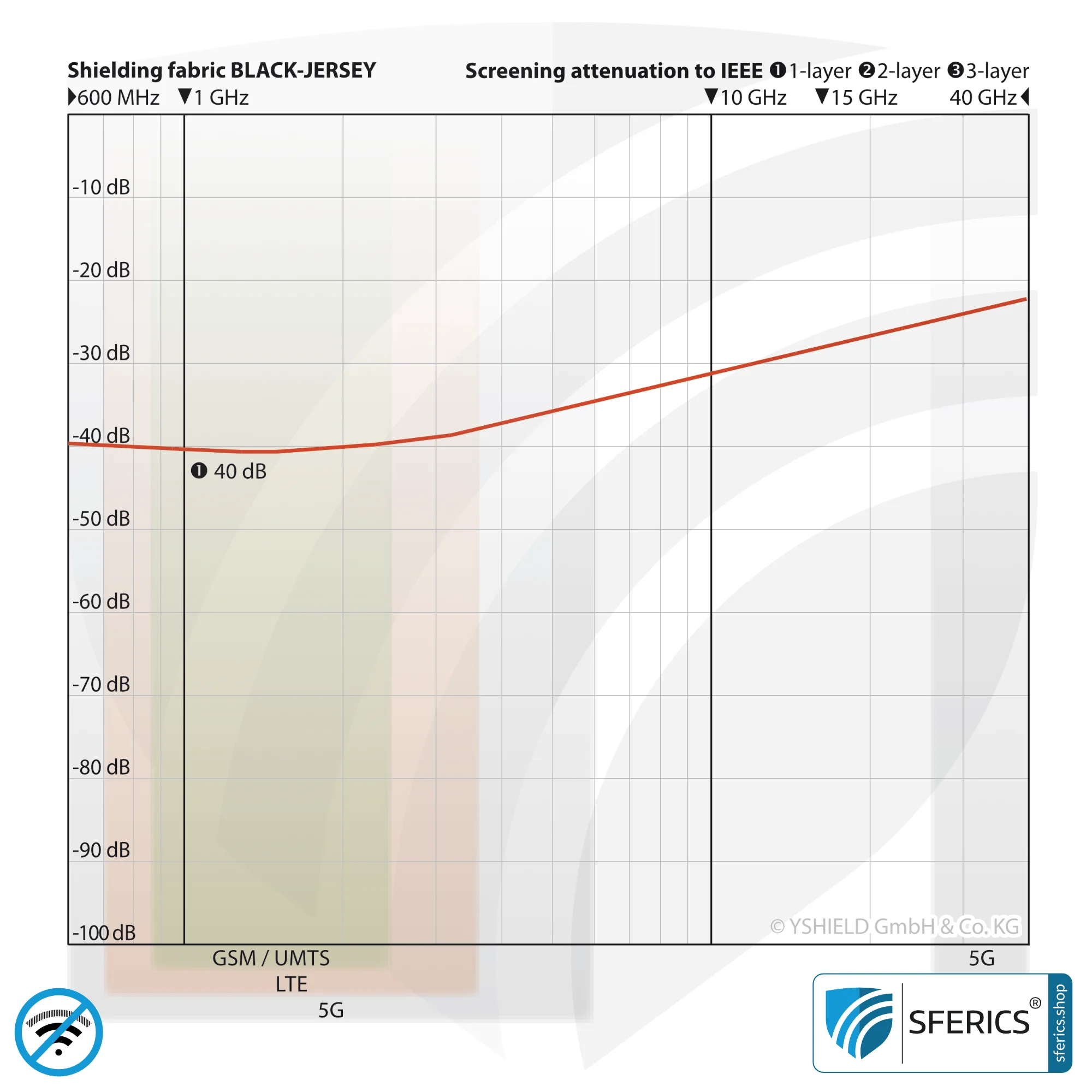 Technische Daten vom Abschirmstoff BLACK-JERSEY gegen HF Elektrosmog