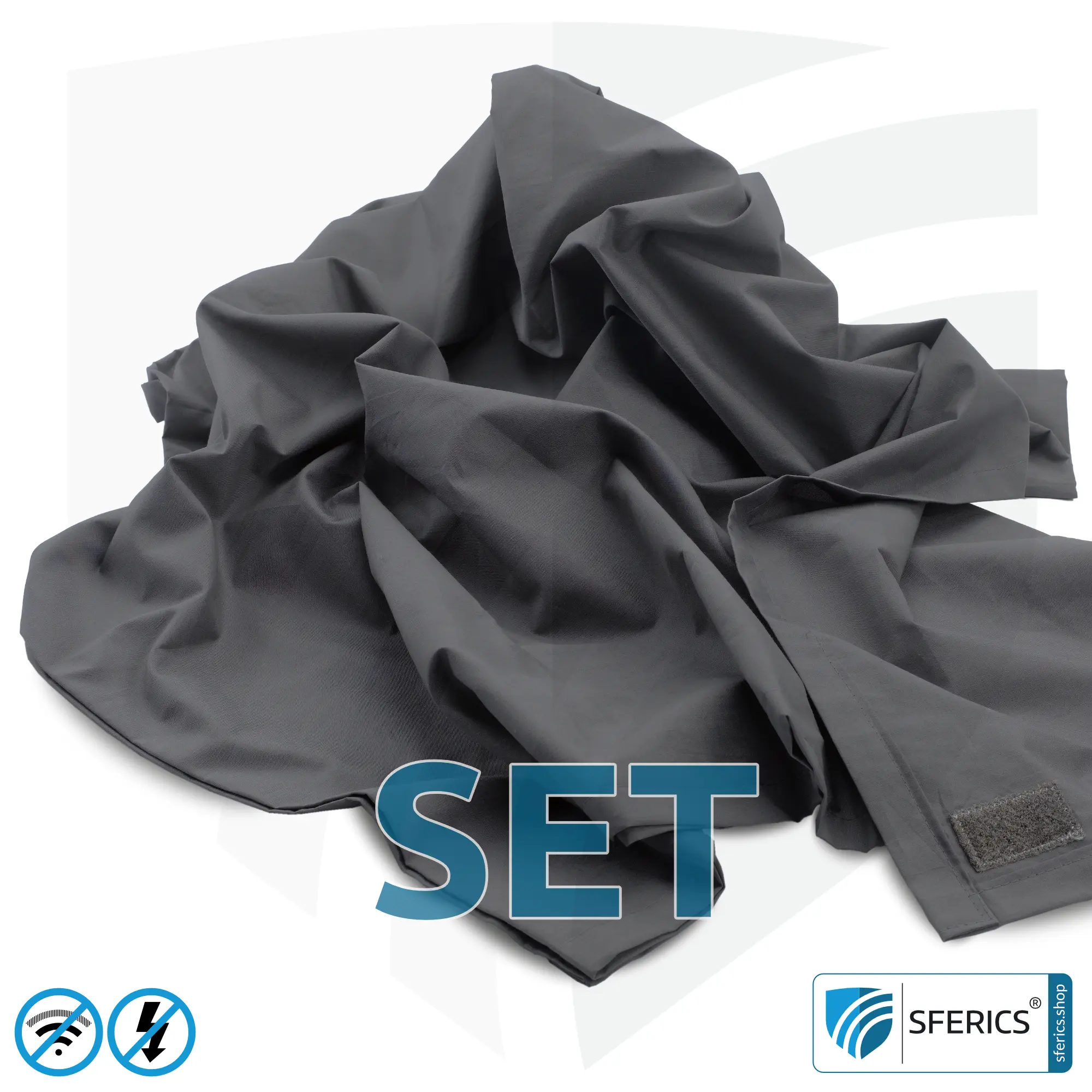 Abschirmende Decke im Set für reale Erholung und nachhaltige Entspannung. Mobiler Schutz vor Elektrosmog HF + NF, weltweit. Wirkungsvoll gegen LTE, 5G, WLAN, elektrische Wechselfelder NF, uvm.