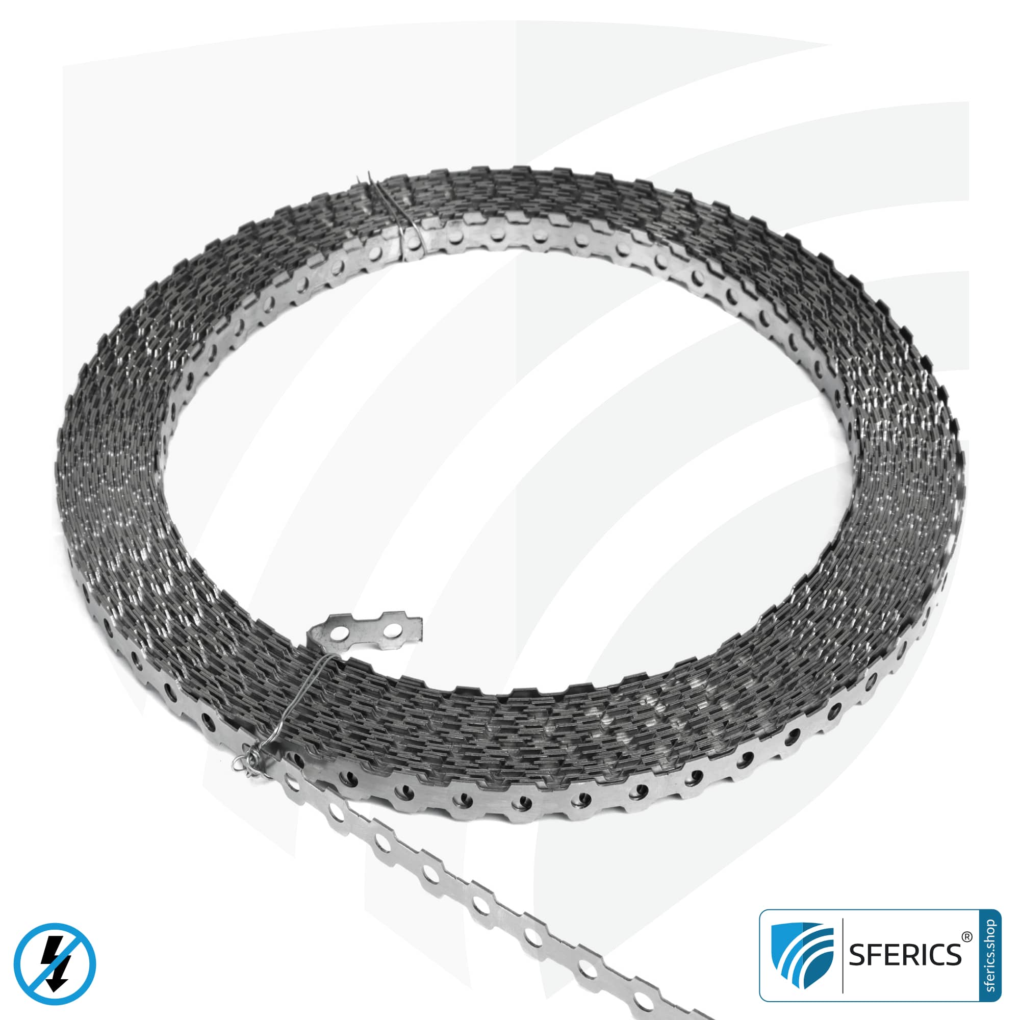 Edelstahl Erdungsband | Lochband bzw. Metallband zur Erdung von Armierungsgewebe, Abschirmgewebe und Abschirmvlies.
