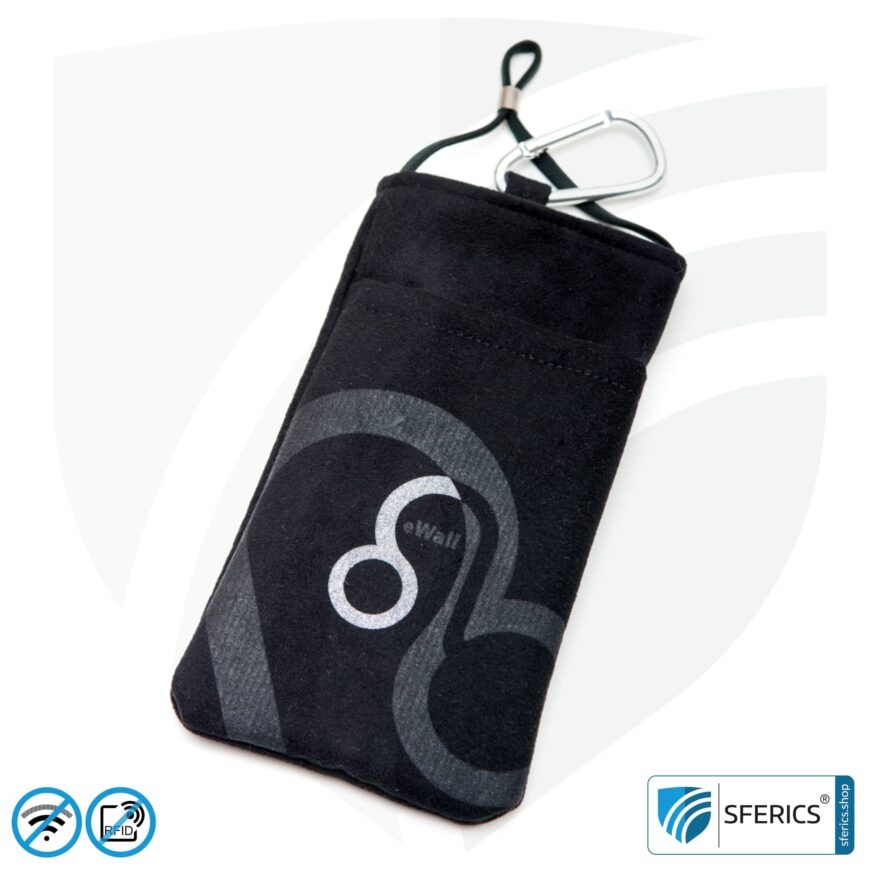 Handytasche eWall im Design SCHWARZ mit 3in1 Schutz! Technischer Schutz gegen Elektrosmog, Datendiebstahl und Kratzer am Display.