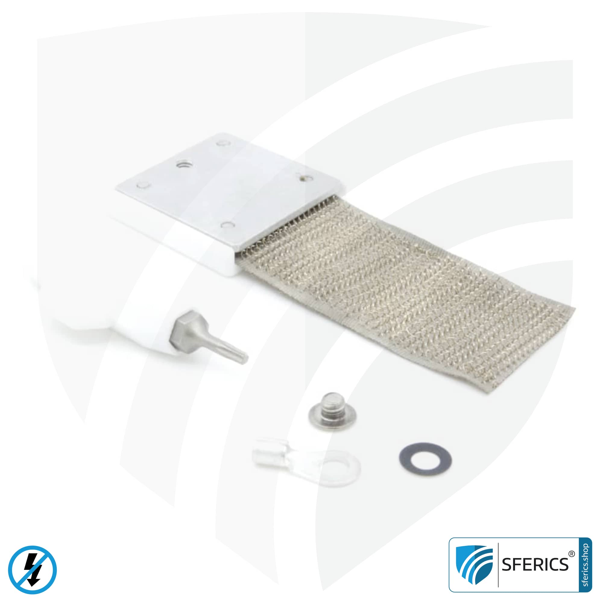Mobile Erdungsplatte in 3 Varianten zur Vorbereitung der Erdung vom abschirmenden Baldachin, Bodenunterlage, Zelt, Schlafsack, Bettwäsche, Decke, u.v.m.