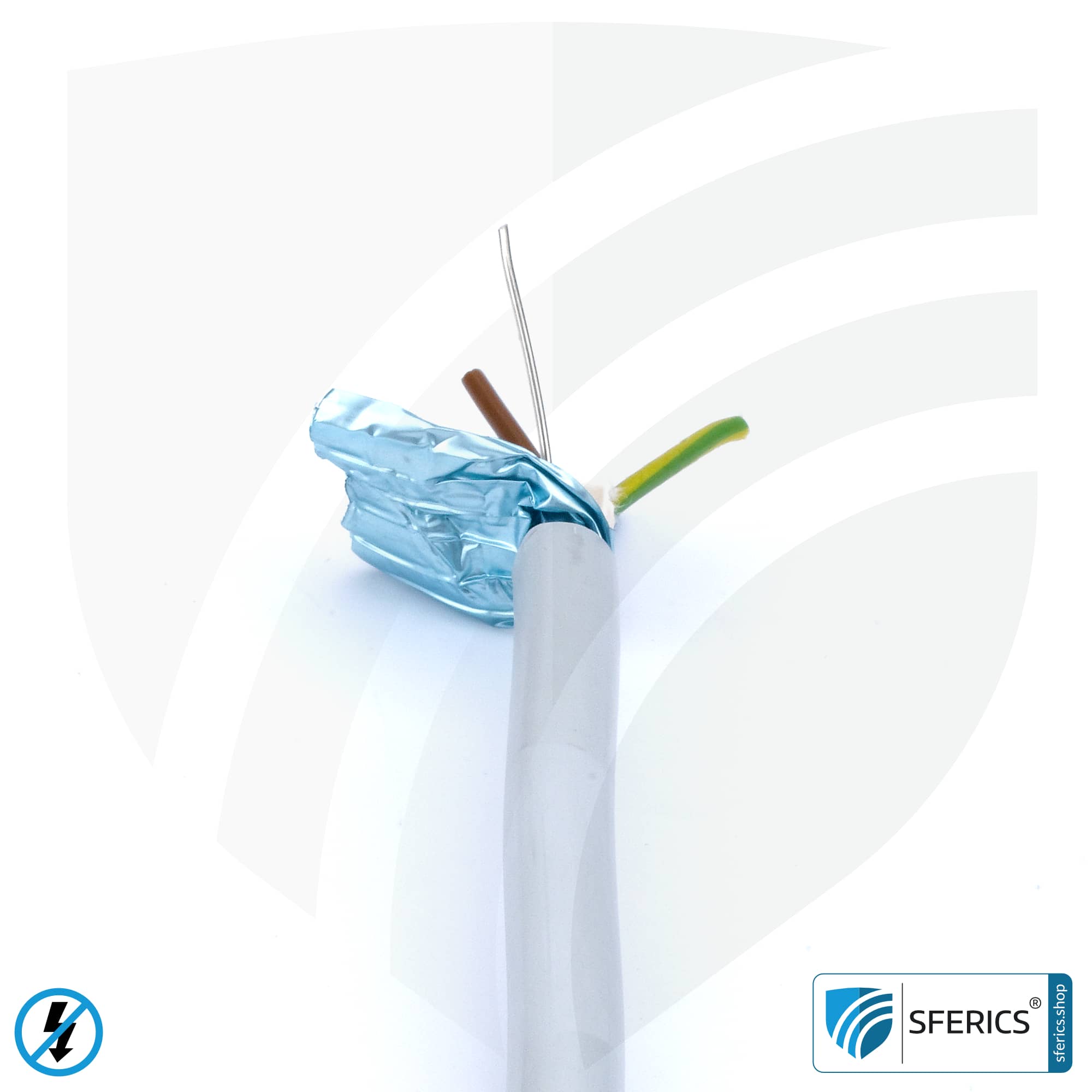 Mit diesem geschirmten Elektrokabel, wird diese Situation von vornherein verhindert. Die automatisch produzierten niederfrequenten elektrischen Wechselfelder vom haushaltsüblichen Wechselstrom verlassen das ummantelte Elektrokabel erst gar nicht.
