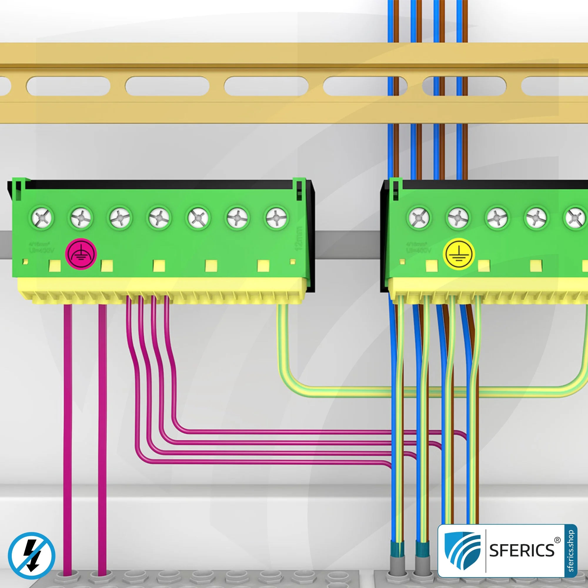 Schema Stromkreisverteiler mit geschirmtem Elektrokabel und geschirmten Installationsdosen