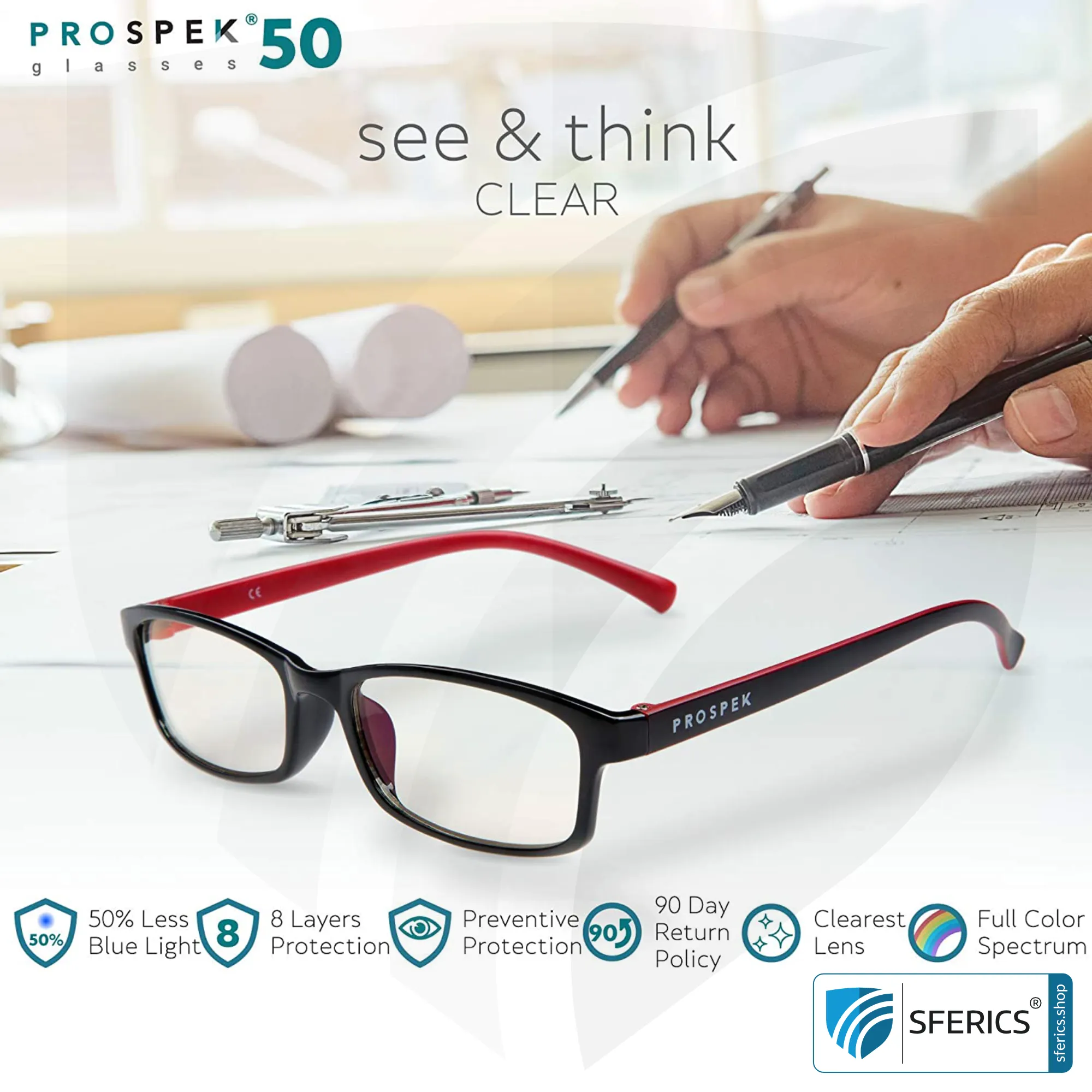 Egal ob nach einer Brille fürs Büro oder Late Night Streaming gesucht wird. Anti Blaulicht und Blendschutz Computer Brillen von PROSPEK bieten erstklassige Hilfe bei schneller Augenermüdung.
