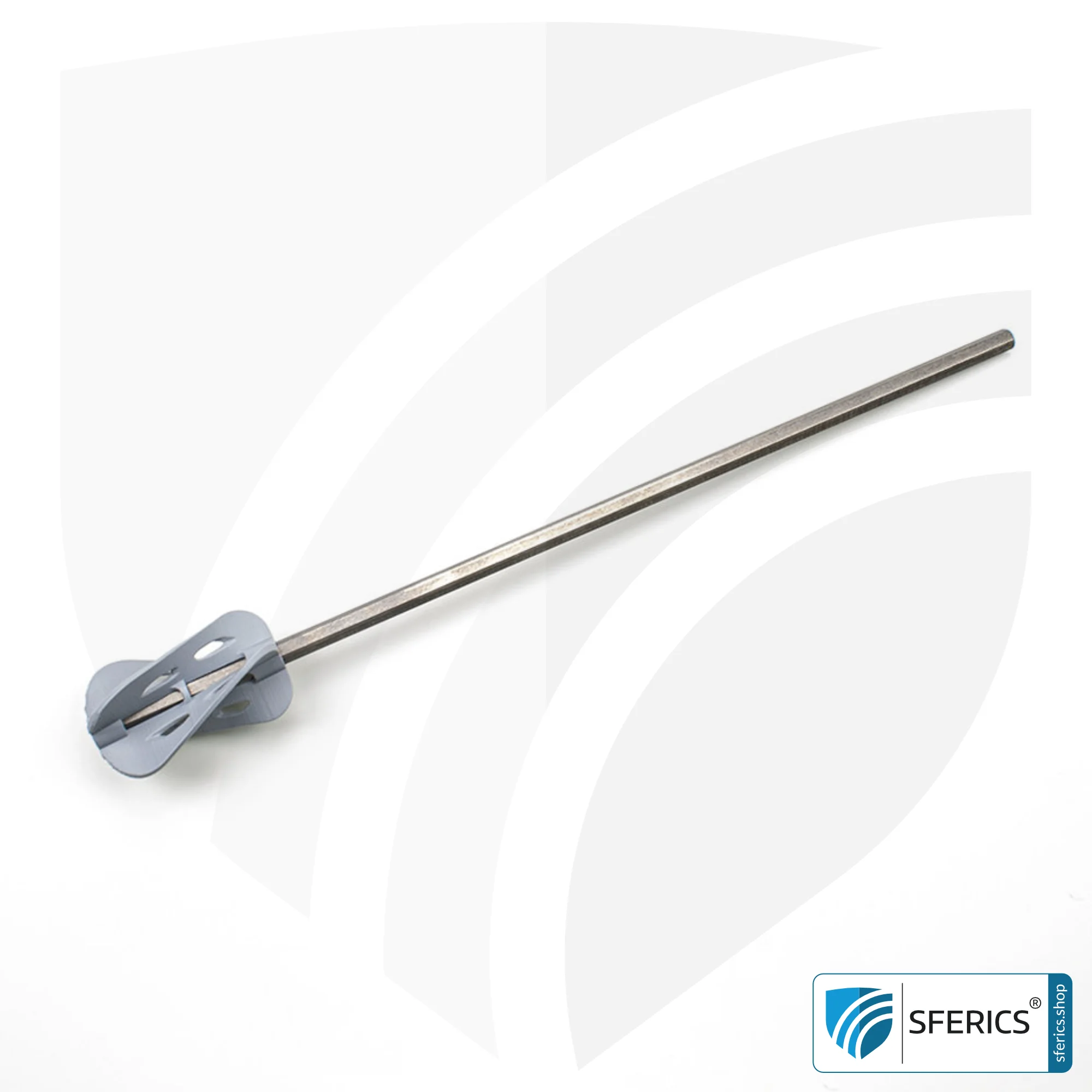 In die 1-Liter Behälter von Abschirmfarben mit 42 mm Öffnung passt kein handelsüblicher Farbrührer, deshalb wurde dieser speziell für euch entwickelt. Dieser Farbmixer hat einen Durchmesser von 40 mm, eine Länge von 33 cm und rührt die Abschirmfarben auch in den schlanken und hohen Farbbehältern schnell und gleichmäßig auf. Der auffällige Unterschied zu dem 3D-gedruckten Farbrührer AR42 ist der Sechskantschaft aus Stahl für die optimale Fixierung beim Rühren.