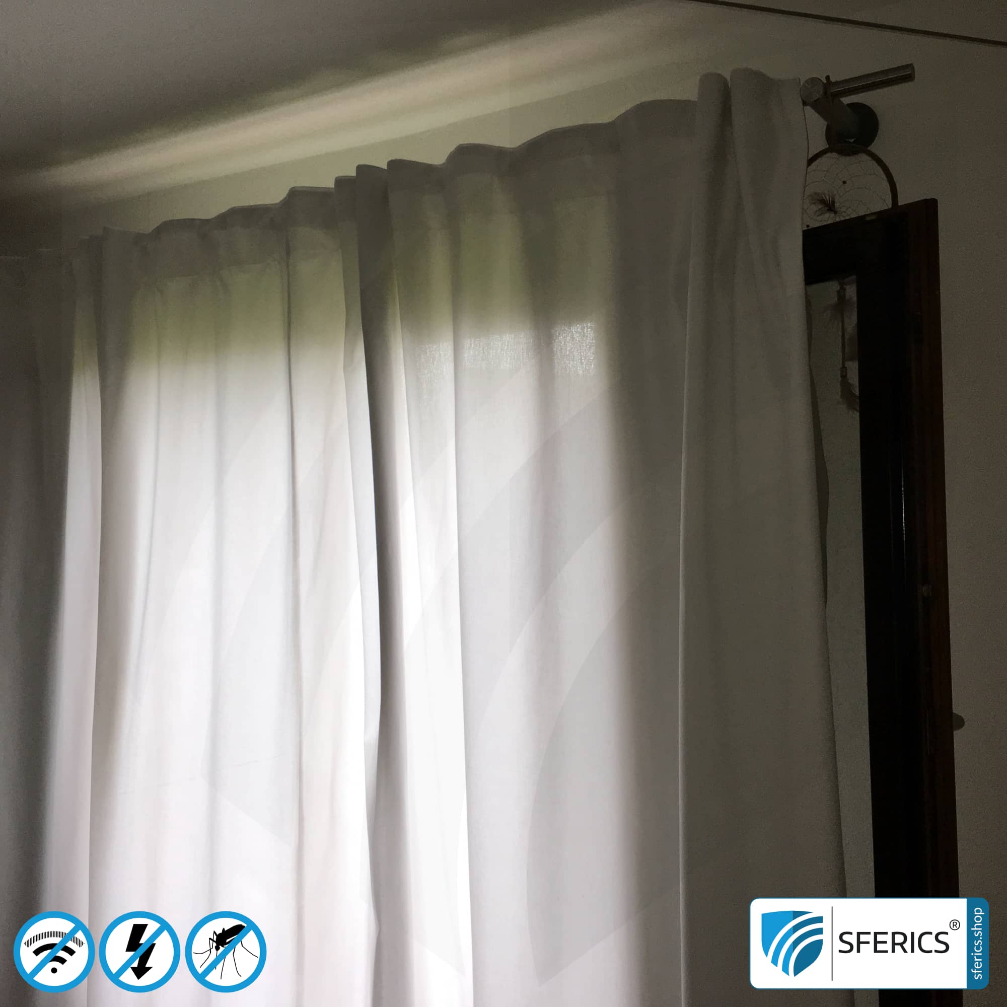 Seit gut einem Jahr nutzen wir den Silver Tulle Abschirmstoff für unsere Baldachine Elektrosmog ULTRA. Nach verschiedenen Tests als Vorhang, empfehlen wir SILVER TULLE nun auch als hochwirksamen Abschirmstoff fürs Fenster. Falls die silberbeige Farbe stört, so kann der Abschirmstoff auch problemlos an einem zB blickdichten Vorhang “hinten” angenäht werden.