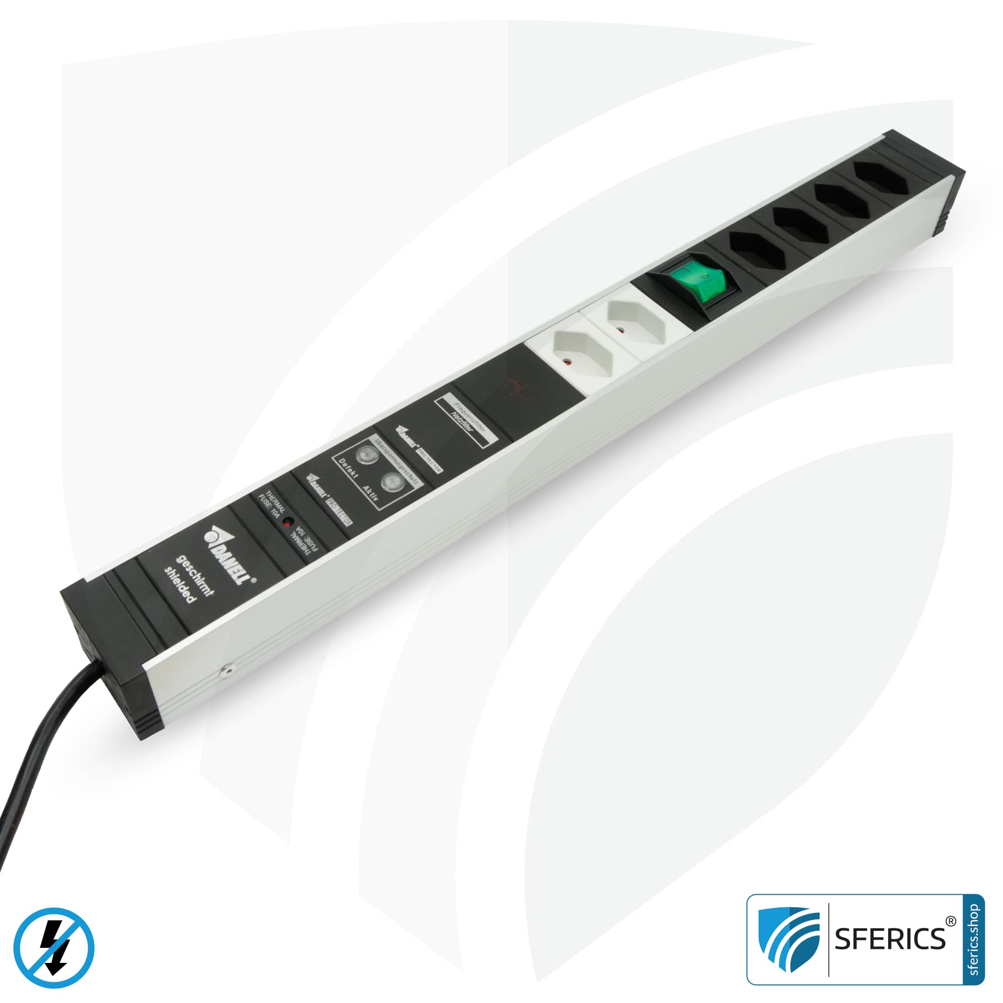 Details zur geschirmten 6-fach (4+2) Vollschutz PC Steckdosenleiste Typ J von DANELL