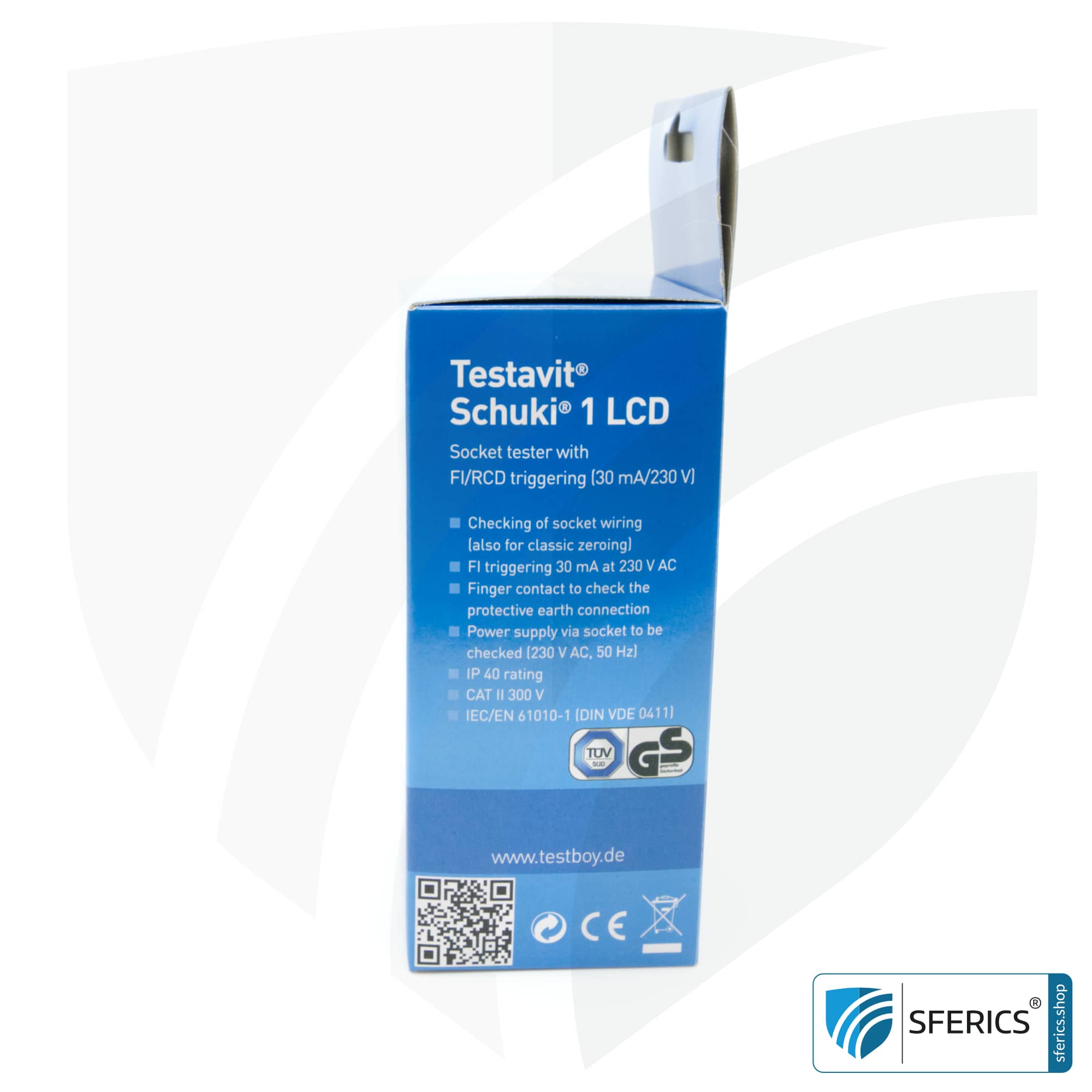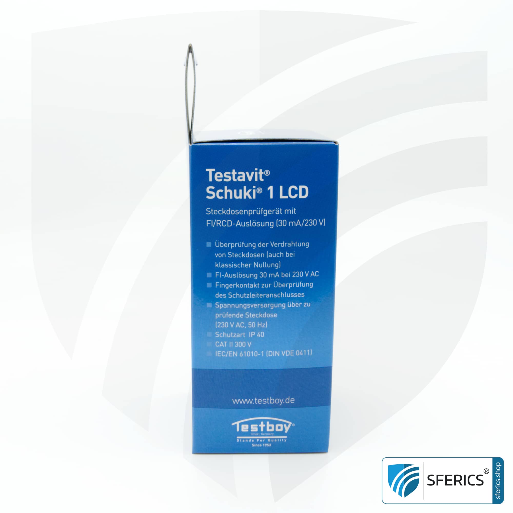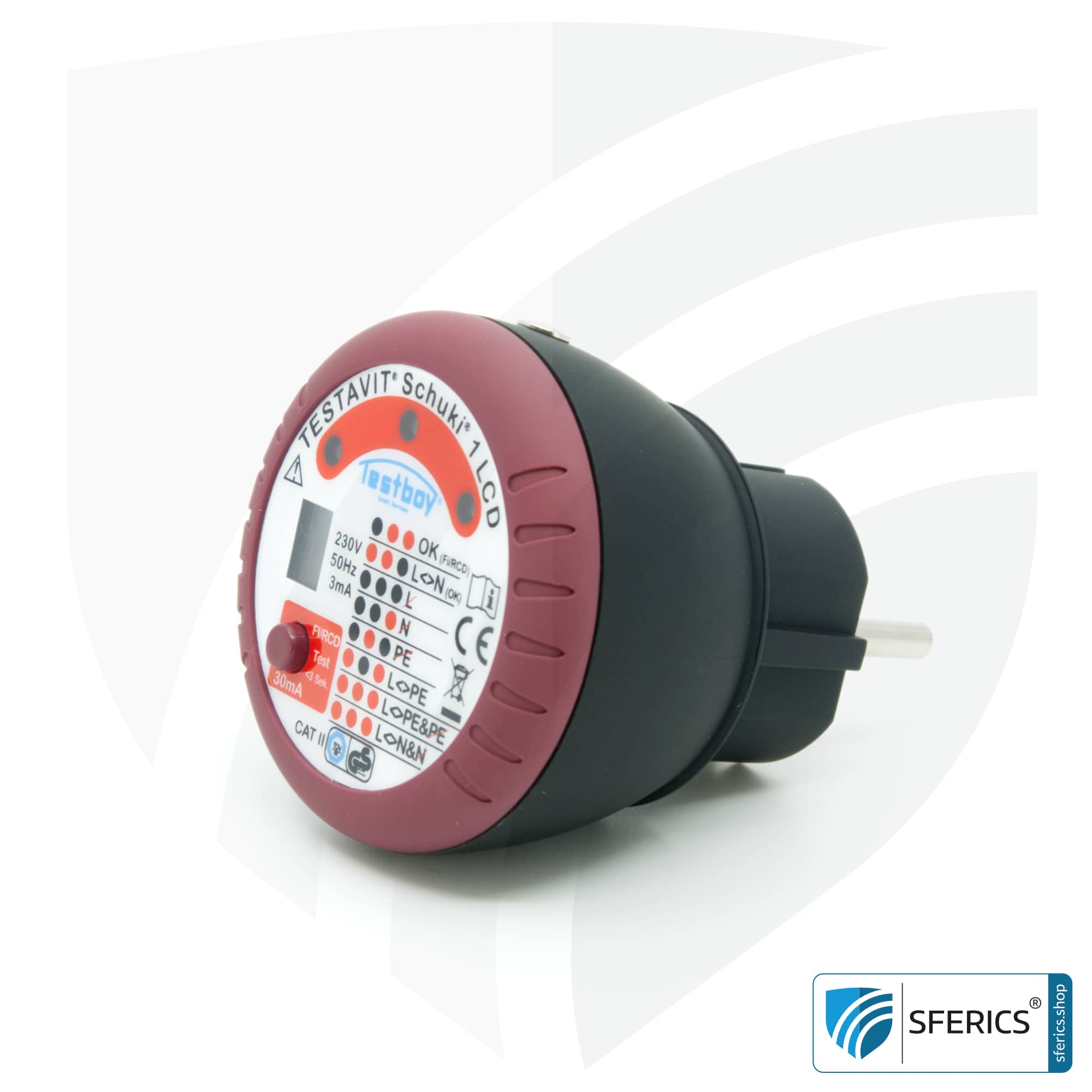 TESTAVIT® SCHUKI® 1 LCD Steckdosen Prüfgerät. Prüft Erdung, Verdrahtung und den FI Schutzschalter.