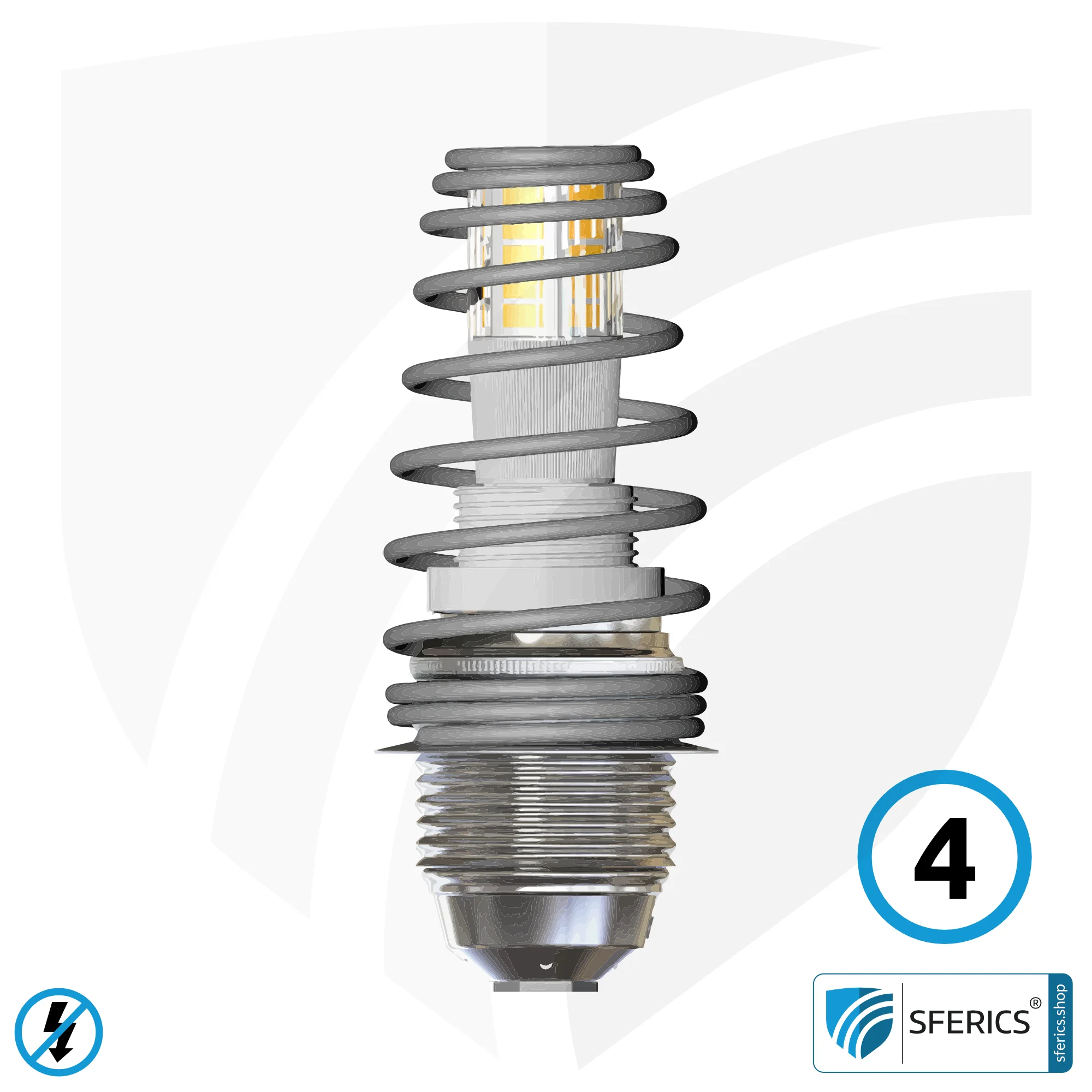 Diese geschirmte Leuchte (Schutzklasse 1) mit entsprechendem Aufbau erzeugt nur noch ein elektrisches Wechselfeld von minimalen 0,4 bis 0,6 V/m.