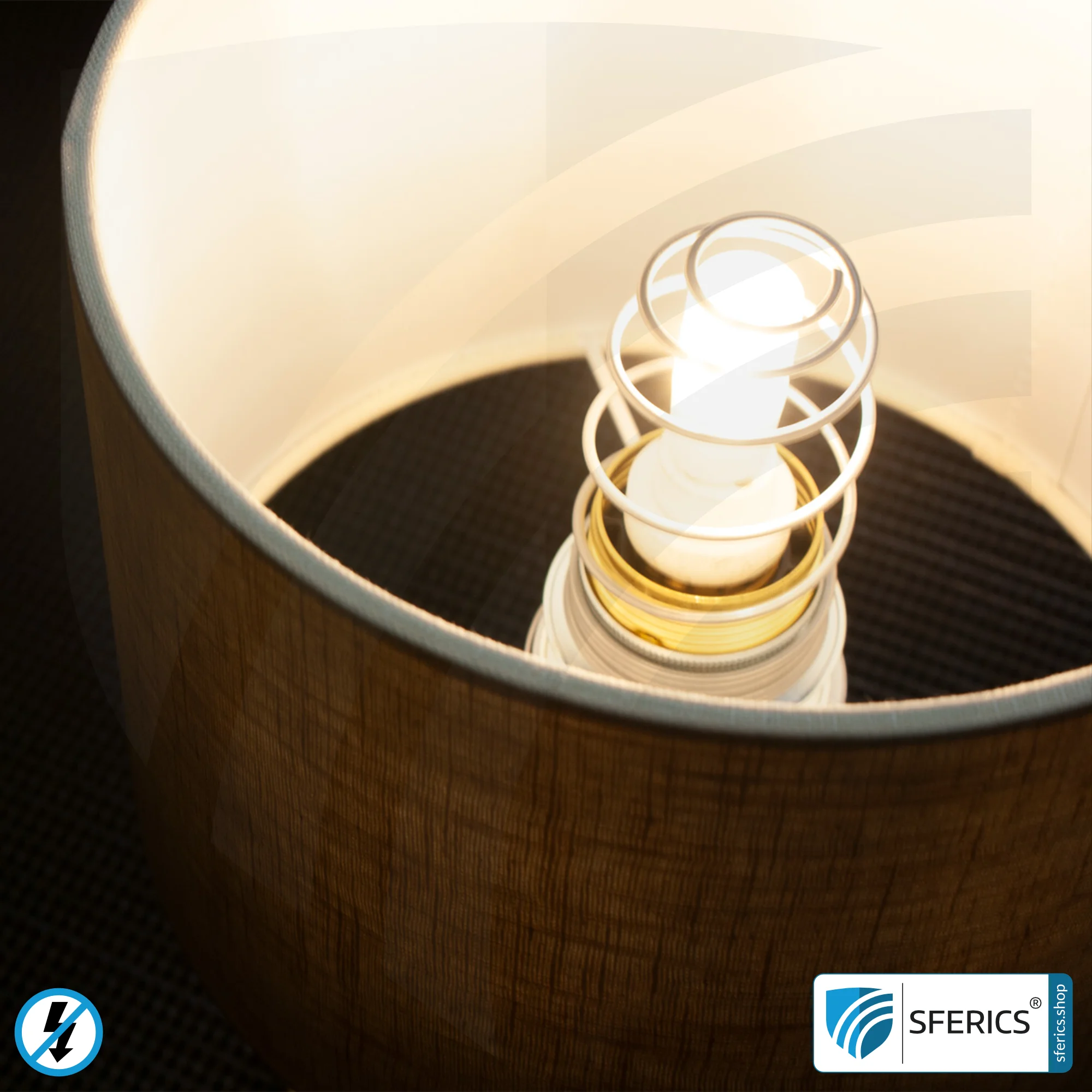 Neben dem Schutz vor elektrischen Wechselfeldern wurden noch weitere baubiologische Aspekte berücksichtigt. So ist beispielsweise der Innenreflektor des Lampenschirms aus Papier-Karton gefertigt (statt aus PVC-Kunststoff). Der Grund dafür liegt in der Verhinderung jeglicher Ausdünstungen durch diesen Reflektor.
