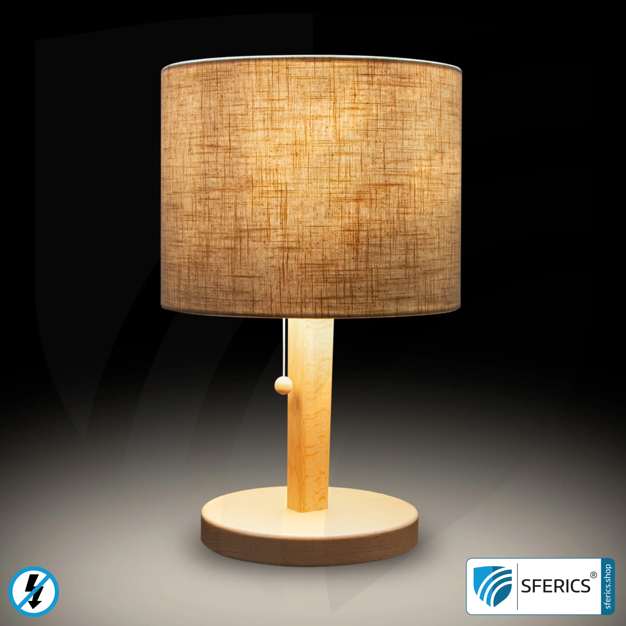 - Tischleuchte in Zylinderform zur Reduzierung niederfrequenter elektrischer und magnetischer Wechselfelder | geschirmt vom Leuchtmittel bis zum Netzstecker