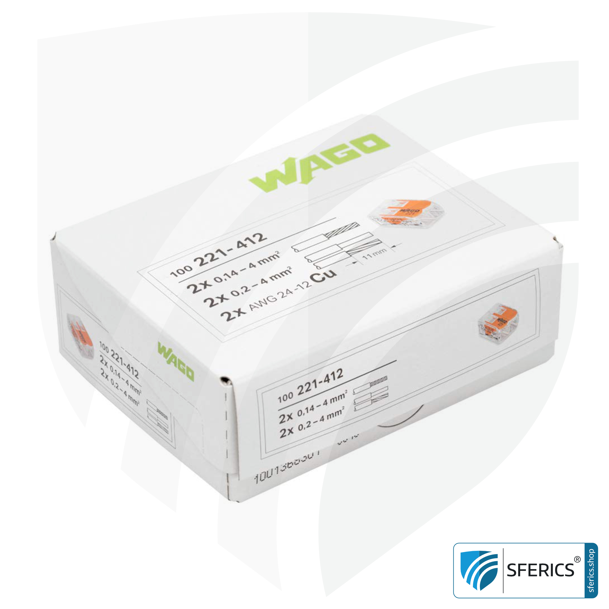 WAGO Compact Verbindungsklemme, Serie 221 | Modell 221-412 | für 2 eindrahtige, feindrahtige und mehrdrähtige Leiter | Alternative zur Lüsterklemme